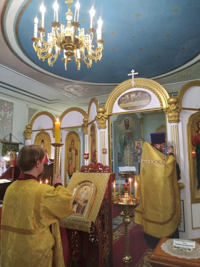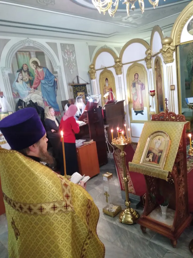 На Божественной литургии были вознесены молитвы о восстановлении мира, в связи с событиями на Украине.
